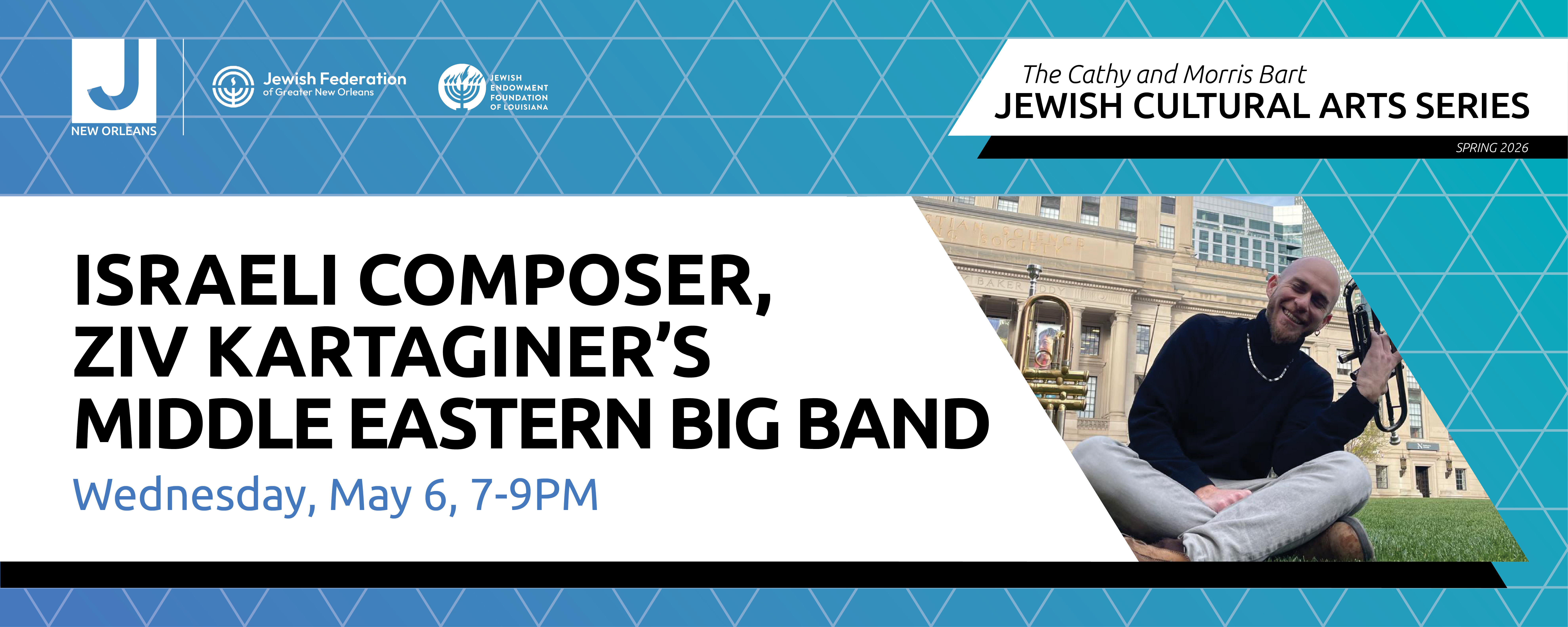 Welcome to the Jewish Cultural Arts Series, a celebration of Jewish creators that brings vibrant cultural events to our New Orleans community. We invite you to explore the exciting lineup of events for the Spring 2026 season below.